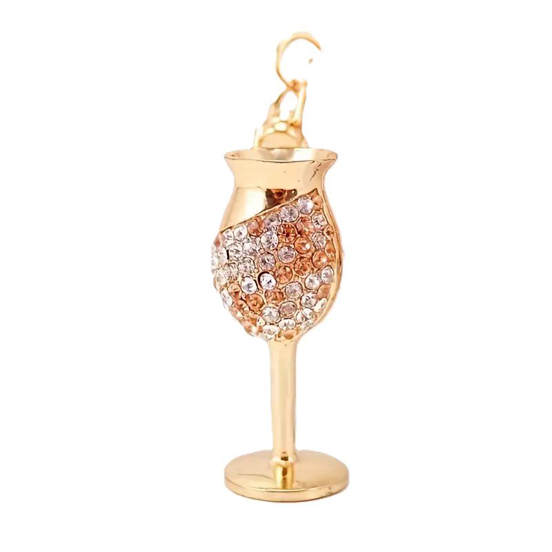 Cheers to style! Our Sip Happens Purse Charm/Keyring brings a touch of glamour and fun wherever you go. Crafted in gold tone, the goblet features a body of clear and topaz crystals that sparkle with every movement.