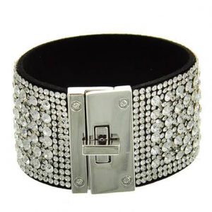 Cuff Bracelets. Chic, elegant sparkly cuff bracelets. Fabulous 8″ crystal bracelet in silver or black. This beautiful piece is versatile and lovely to wear with any outfit.