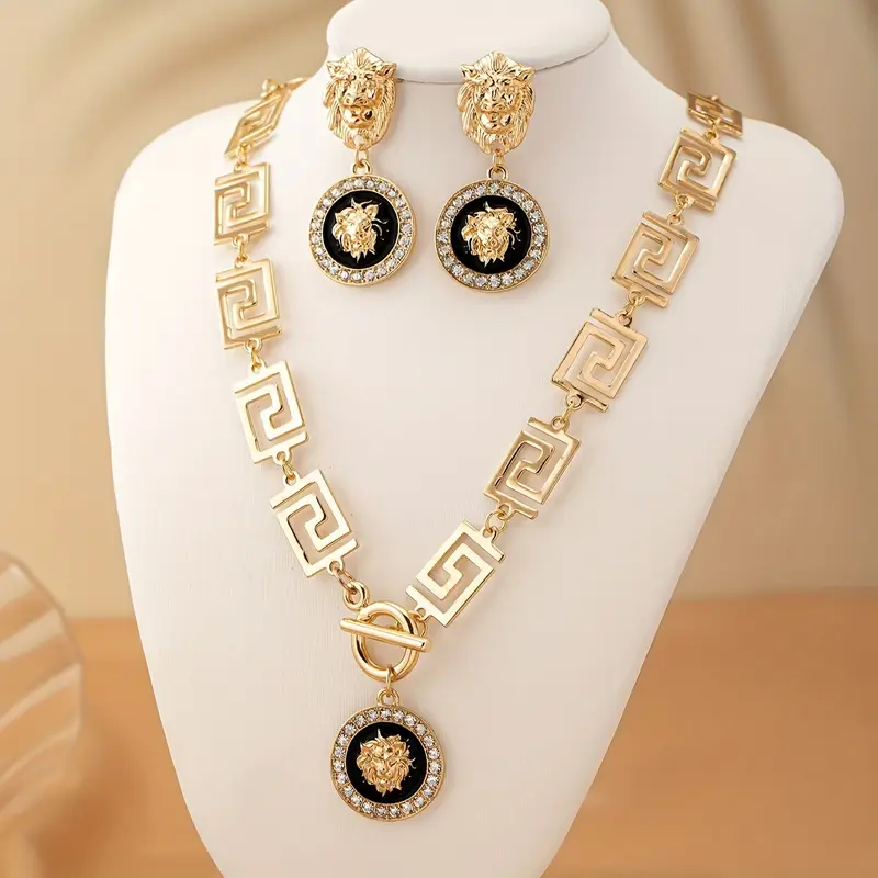 Unleash your bold style with our 2-Piece Retro Lion Head Jewelry Set, featuring: